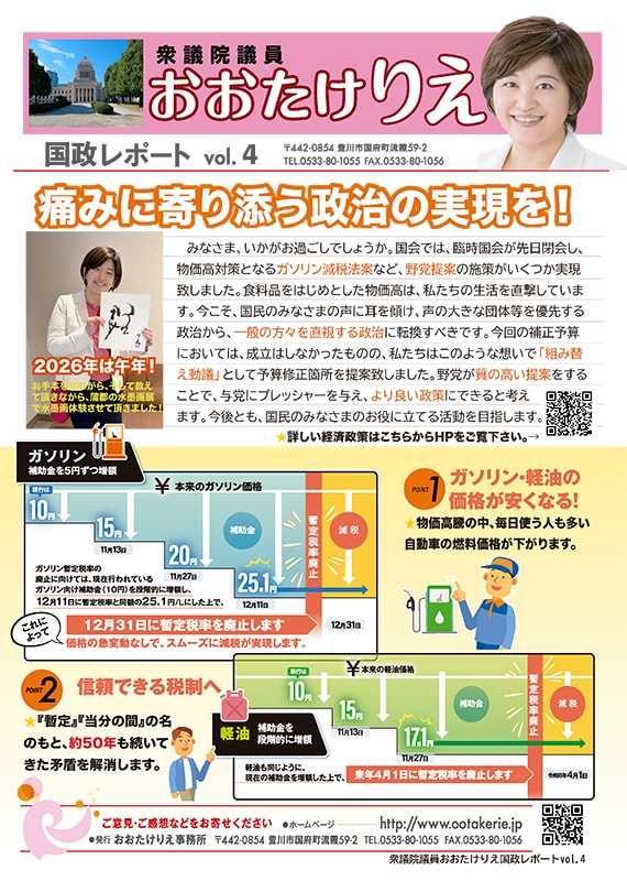 Political Report 国政レポート 国政レポート vol.4 痛みに寄り添う政治の実現を!PDFファイル 国政レポート vol.3 地元の皆様のお声を、国政へ!PDFファイル 国政レポート vol.2 新年度予算、修正は29年ぶりPDFファイル 国政レポート vol.1 野党過半数越えで政治改革が前進PDFファイル